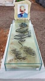 سنگ قبرمرمرسبزباکتیبه بالاسرمرمر وقاب15سانت ارتفاع ودورتادور قاب شیشه 10میل