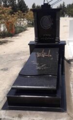 سنگی بسیار زیبا وکاملا یکدست مشکی باطراحی فوق العاده که امکان تغییر طراحی بر روی سنگ امکان پذیر است قطرسنگ سه سانت است یک ابزار نیمه هلال وسط سنگ دارد ابزار دورسنگ نیم گرد هست قسمت پایین سنگ روی زمین یک قاب دور 5سانت دارد ویک قاب ارتفاع حدودا ده سانت دارد یک قاب ارتفاع تو دارد که این قاب ارتفاع 6الی7سانت داخل کار به کاربرده شده ویک قاب ارتفاع روی این کار حالت 5سانت بالا اومده وسنگ اصلی روی کار سوار می شود باکس زیر کتیبه دارد با ارتفاع 15سانت که از پله ی دوم از پشت سنگ نصب شده کتیبه روی باکس سوارشده وو دوعددستون سنگی ابزار خورده عکس به صورت لیزری بر روی سنگ چاپ می شوداگرعکس اضافه ومشخصات اضافه بخواهید هزینه جداگانه دارد