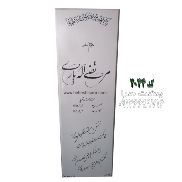 سنگ( بهشت سرا )بزرگترین مرجع آنلاین انواع سنگ مزار همراه با پکیج های کامل است. برای خرید انواع سنگ قبر یا کتیبه سنگ مزار با شماره تلفن های ۰۹۱۲۶۶۴۹۷۱۶ و 09120277592 یا خط ثابت ۰۲۱۲۸۴۲۲۷۳۷ تماس بگیرید.