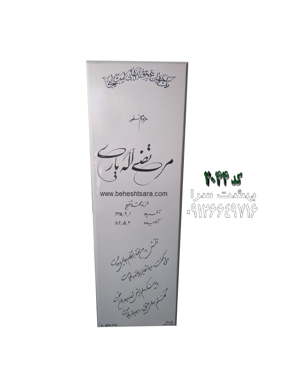 سنگ( بهشت سرا )بزرگترین مرجع آنلاین  انواع سنگ مزار  همراه با پکیج های کامل است. برای خرید انواع سنگ قبر یا کتیبه سنگ مزار با شماره تلفن های ۰۹۱۲۶۶۴۹۷۱۶  و ۰۹۱۲۴۱۶۷۷۳۵  یا خط ثابت ۰۲۱۲۸۴۲۲۷۳۷ تماس بگیرید.
