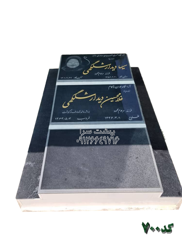 سنگ قبر گرانیت مشکی طرح سه تیکه طبقاتی کد 700
